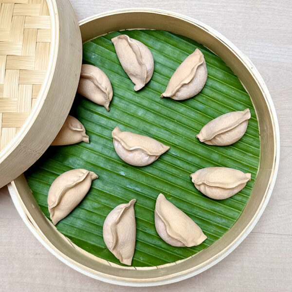 Dumplings 餃子 [jiaˇo zi] sind kleine chinesische Teigtaschen, welche mit Fleisch, Fisch und Gemüse gefüllt sind und in verschiedenen Formen zubereitet werden. Sie werden in China klassischerweise zur Teezeit serviert und sind Bestandteil einer Variation kleiner Speisen – Dim Sum – was übersetzt soviel wie «das Herz berühren» bedeutet.
